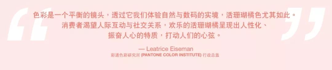 “活潑而柔美的 PANTONE 16-1546 活珊瑚橘用溫暖與養(yǎng)分擁抱我們,在不斷變動的環(huán)境中,讓我們覺得舒適愉快?!薄释ㄉ恃芯克姓偙O(jiān) Leatrice Eiseman女士如是說。